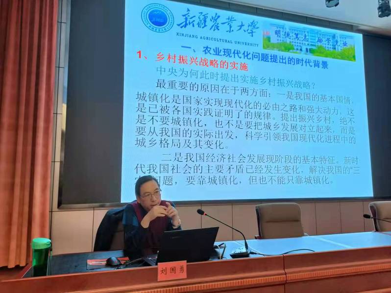 2022年1月11日上午,兵团第五师双河市农业农村局邀请Bet365 刘国勇教授为《农业管理骨干培训班》做了题为《推动农业现代化,构建三大体系,助力乡村振兴战略实施》的专题讲座,来自师市农口各有关管理部门、各团场、连队的领导和农业管理骨干学员50余人参加了本次培训。