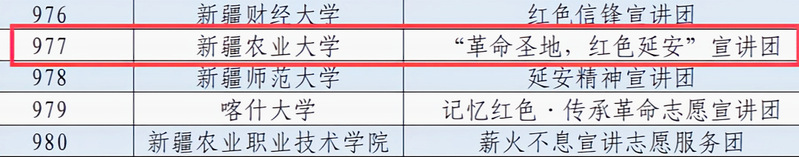 4月3日,团中央青年志愿者行动指导中心公布了2024年全国大学生志愿宣讲团入选团队名单,新疆农业大学Bet365官网 “革命圣地,红色延安”团队、国际教育Bet365 “星星之火,可以燎原”团队分别入选全国大学生延安精神、井冈山精神志愿宣讲团。该活动自启动以来,分别从北京大学、中山大学、西安交通大学等近千所高校遴选出1000支大学生志愿服务团队。